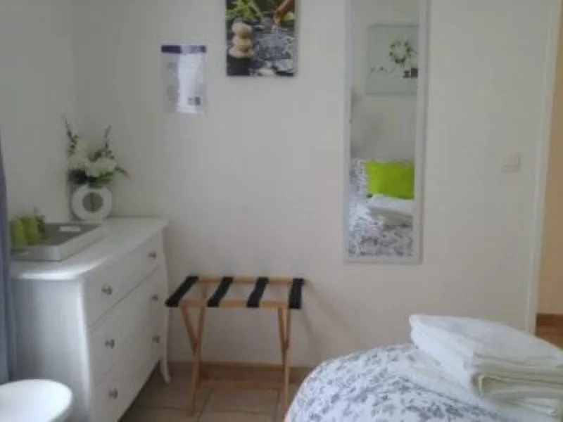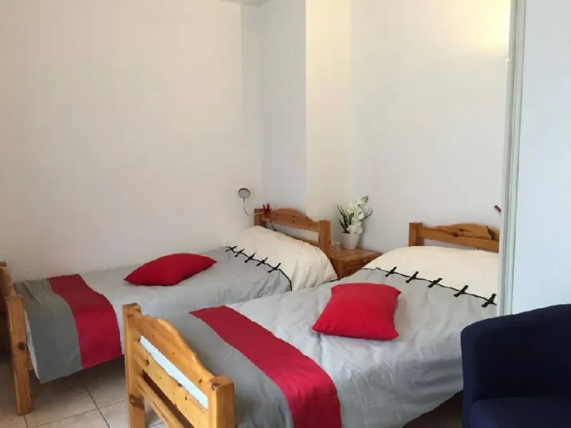 In the rez of road, shared lounge, given to the hosts with Big screen TV dish. The family room in high tide foot consisted of two rooms: a room with a bed 160*200 and a room with 2 beds 90*190 with access to the terrace . Independent TOILETS. Bathroom with bathtub and a washbasin. Free internet connection (Free wifi).Parking lot outside.