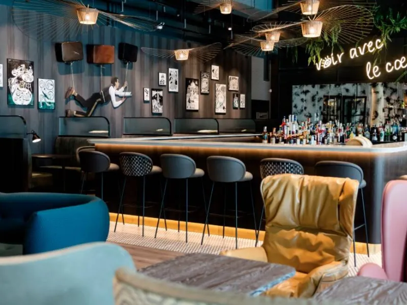 Dès l’entrée, l’atmosphère unique du Motel One Paris–Porte de Versailles se révèle. Le design mêle élégance française et modernité, avec des clins d’œil à l’art et à la culture parisienne.