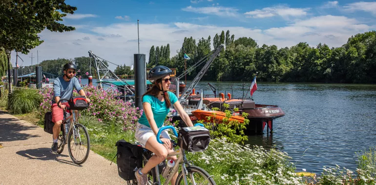 Between Chatou and Sartrouville, the Seine à Vélo cycle route runs along a flat greenway. Riding from Sartrouville to Val Parisis, for the time being, you have to cross an urban area without any specific facilities for cyclists in place, while awaiting the laying out of the route along the riverside. On the stretch between Cormeilles-en-Parisis and Herblay-sur-Seine (Communauté d'Agglomération Val Parisis), you ride along roads shared with motorized traffic. However, certain traffic-calming measures have been put in place in parts. In the long run, a greenway will run beside the Seine, reserved for non-motorized forms of transport. Along this stage, the way is flat.